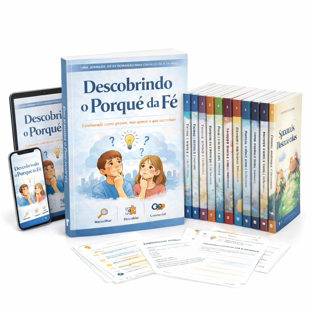A série digital criada por apologistas, teólogos e psicólogos infantis para ensinar crianças de 8 a 14 anos a PENSAR a fé — não apenas repetir histórias bíblicas.